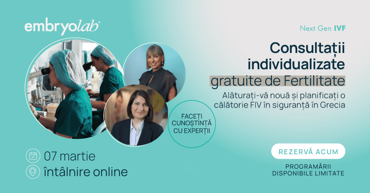 Alăturați-vă nouă pentru a explora gama noastră completă de servicii de fertilitate, inclusiv FIV, donarea de ovule, donarea de embrioni, congelarea ovulelor, tratamente pentru infertilitate masculină și PGT, toate adaptate nevoilor dumneavoastră personale.