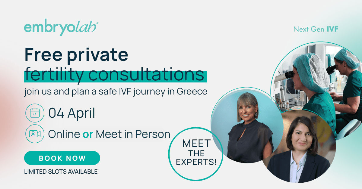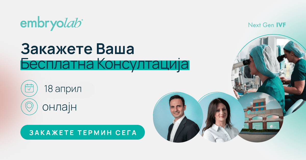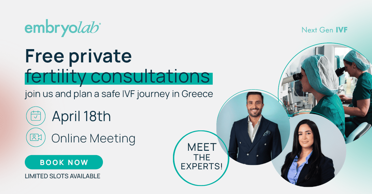 Клиниката за плодност „Embryolab“, избрана за една од најдобрите клиники за плодност во Европа, предлага приватни евалуации од експерти за проблеми со плодноста на 18 април 2026 онлајн или запознајте нè лично во Солун.
